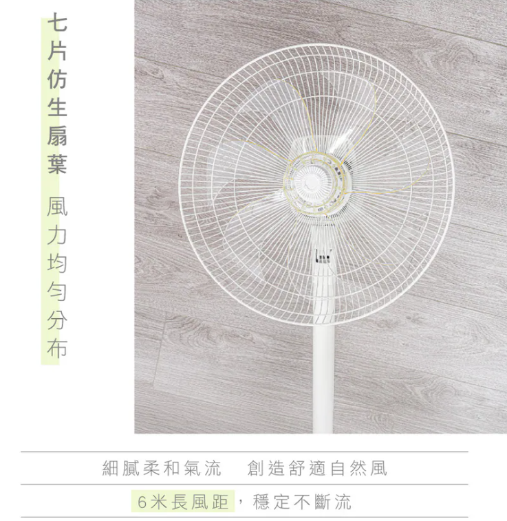 • 7片式扇葉風感柔順,創造舒適自然風